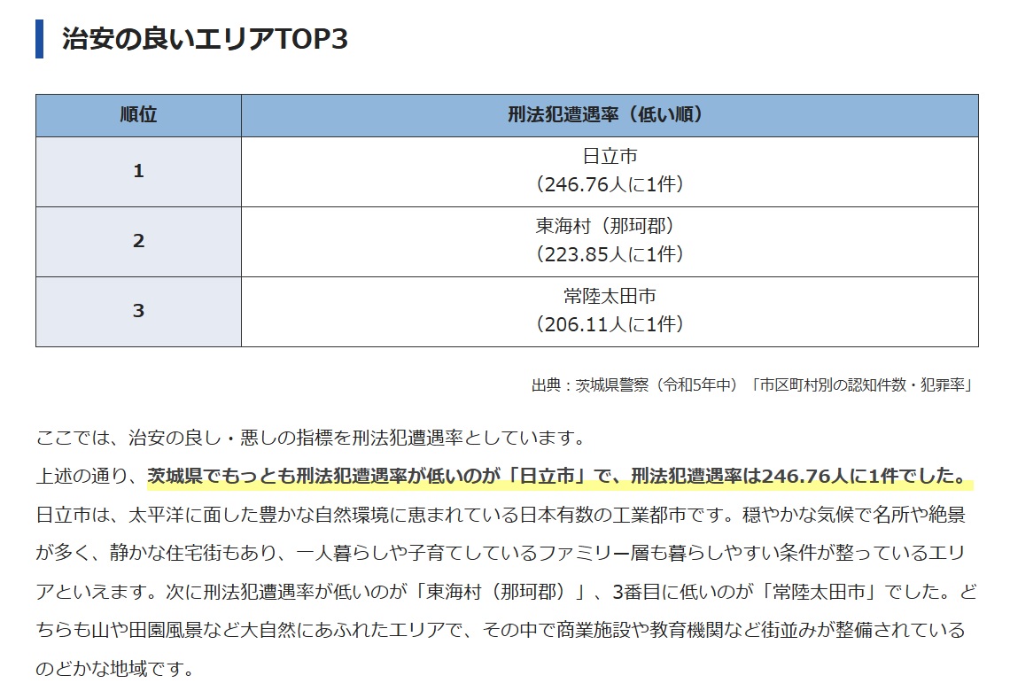 つまり、県全体のイメージとは裏腹に、全国的に見ても、日立市は「安心して暮らせるまち」と胸を張れる治安を維持しています。